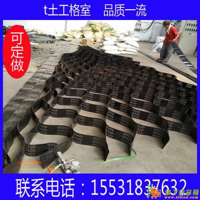 土工格室是由强化的HDPE片材料,经高强力焊接而形成的一种三维网状格室结构。一般经超声波针式焊接而成。因工程需要,有的在膜片上进行打孔。