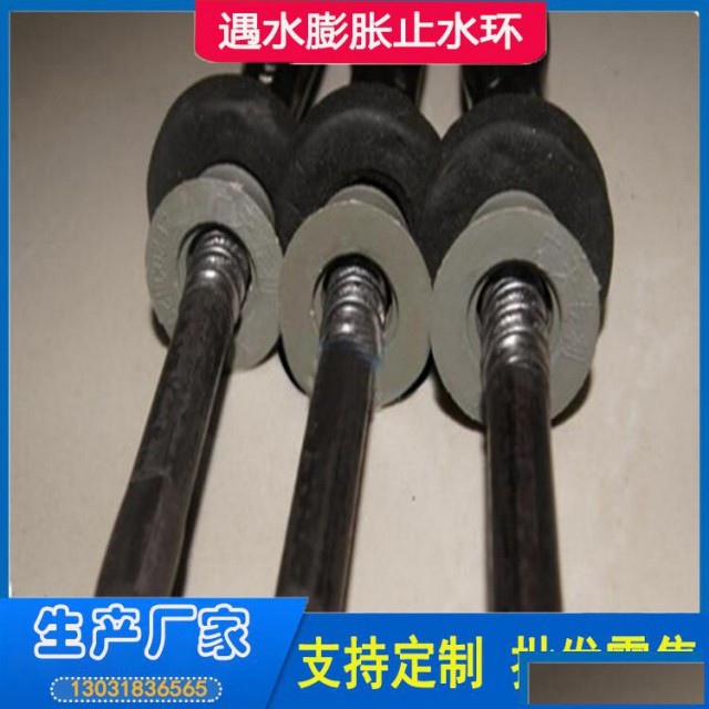 腻子型遇水膨胀止水环采用PN-300型遇水膨胀橡胶制成,性能达到GB/T18173《高分子防水材料》第三部分一遇水膨胀橡胶中的各项指标。它可以是圆型或矩型片壮体通用规格为外径尺寸D=40mm,厚度H=10mm。在使用时,只要将止水片紧套于对拉螺栓或板条式拉杆中部即可,再被埋入现浇混凝土中就能起到的防水效果。