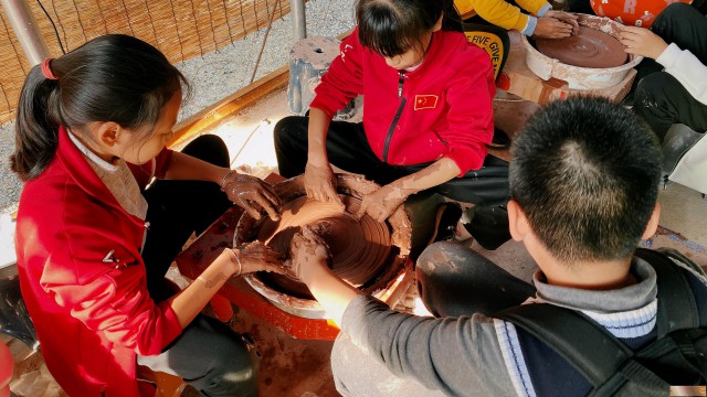 下午还有DIY画脸谱、磨豆浆、陶艺、棉花糖环节和休闲游玩:划竹筏、射箭、羽毛球、桌球、足球、乒乓球、采摘等项目。听到这些后到处都充满了孩子们的笑声!哈哈哈