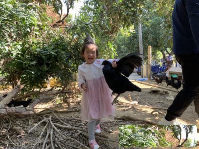 然后带着宝贝们去鸡场抓鸡,五黑鸡???以前也没见过,不过看着就满满的营养。正宗的走地鸡,追了好久也没抓到,后来几人商量,得把它围住,果然不一会就住到一只大的,宝贝们都说有鸡腿吃了,开心的拎着鸡往野炊场走。