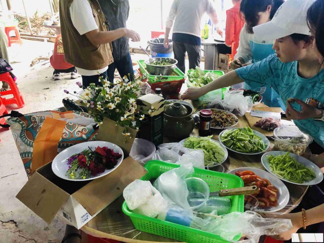 来到这里想吃到美味的地道农家菜是和大家的辛苦勤劳分不开的!分工明确,各司其职,洗菜、捡柴、生火、杀鱼,体验亲自动手的乐趣。在我们大厨刀光剑影般的精湛厨艺之下,一盘盘让人蠢蠢欲动的农家菜呈现在大家的眼前!