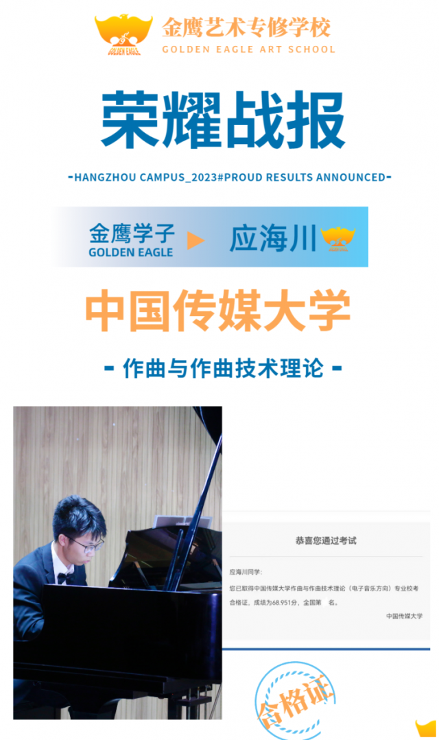除此之外,应同学的文化课有600分以上,这给他学习专业也提供了很好的动力。