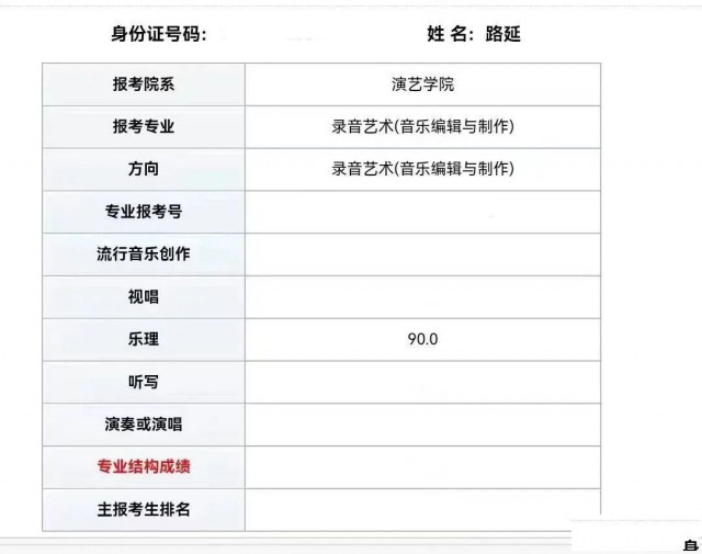 联考分数及校考分数:联考基本乐科71分;武音录音艺术乐理成绩90分。