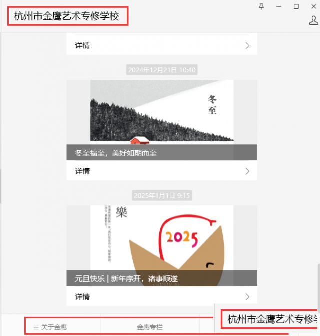 想要全面了解金鹰艺术专修学校的考生及家长,可以添加金鹰艺术专修学校WX公众号“杭州市金鹰艺术专修学校”。