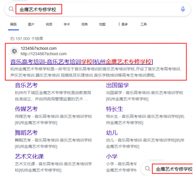 金鹰艺术专修学校也有自己的网站,想要了解金鹰艺术专修学校的考生和家长也可以前往咨询,会有专门的接待人员回答呢。直接搜索“金鹰艺术专修学校”如下图,第一个就是啦!