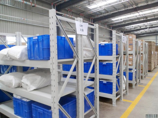 中型货架主要适应存放货物较轻的仓库,中型货架每层承重为200-500kg