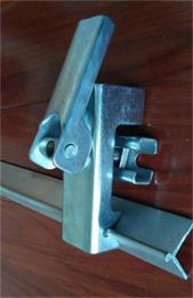 3、手动旋转压紧手柄,适当时向上(下)推到底,可对角铝施加足够的压力,保持裙板位置,且压紧手柄不会松动脱落。