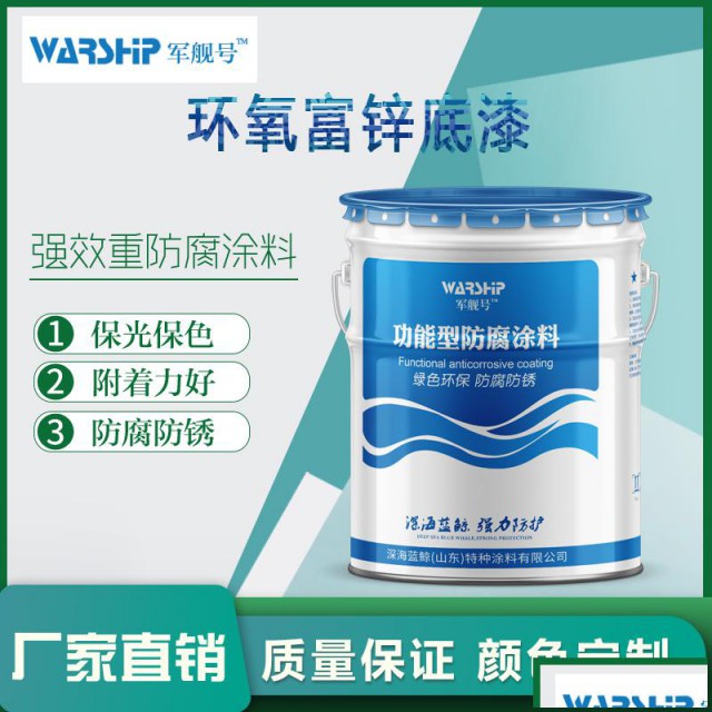 包装规格: 环氧富锌底漆浆(A组份)25kg/桶,固化剂(B组份)2.5kg/桶。