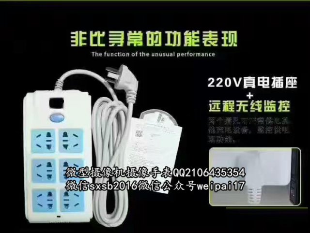 公牛排插WIFI摄像机、不断电24小时持续远程无线监控,葳信sxsb2016 分辨率可选4K、2K、1080P、720P。H.264编码,扣扣2106435354,超清晰视频摄像。自身具备WIFI热点,有效监控距离为10米。本产品用于室内监控,请在有光环境下进行监控。安装地点存在WIFI的情况下,可以实现远程监控。电脑、手机都可以安装APP与PC端进行在线监控。隐蔽摄像头可选正面和侧面,可以正常使用排插功能。最大支持128G存储,是您远程看家看保姆看公司的监控神器。