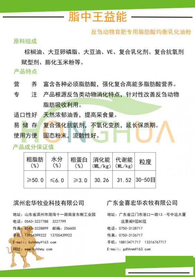 胃发酵并易被瘤胃后消化系统转化、吸收、利用的脂肪酸均衡油粉。能显著提高反
