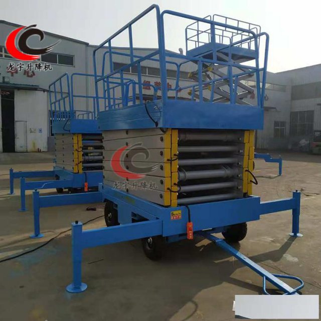 移动剪叉式升降机,移动式高空作业平台,剪叉式高空升降机,济南龙宇升降机械是专业生产制造厂家,四轮移动式升降平台,SJY4~18米升降机,300-2000kg移动剪叉升降台,采用中德合资优质泵站。移动式升降机为四轮移动行走,垂直升降,其剪叉主结构采用上海宝钢锰钢矩形管制作,工作台面宽大,结构坚固,承载能力高,升降平稳,安装维护简单方便,可多人同时工作,使高空作业更安全、效率更高。根据其使用环境和使用要求,可以选择不同的动力组合,选择不同的可选配置,完成举升物品等任务,取得更好的使用效果。