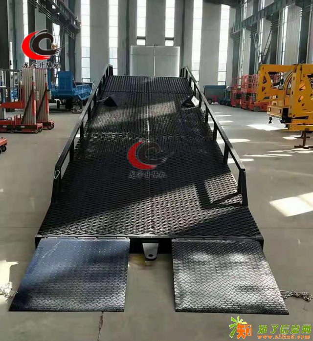移动式液压登车桥是与叉车配合使用的货物装卸专用辅助设备,叉车从地面通过登车桥斜坡缓慢驶入汽车车厢内部进行批量装卸作业。