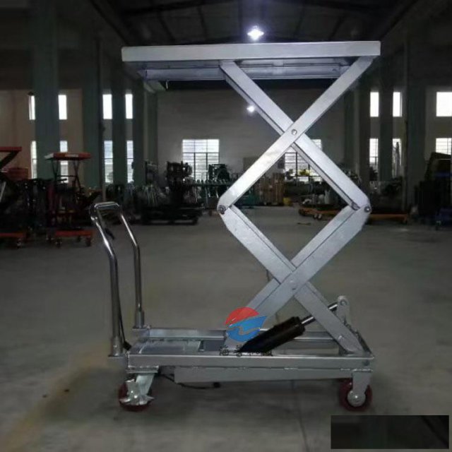 脚踏平台搬运车采用脚踏液压泵驱动平台上升采用脚踏液压泵驱动平台上升,载重量从300公斤至1000公斤升高有900毫米至1700毫米各规格产品。适用于各行业货物升高移动。它使繁重的搬运工作变得轻松,快捷。