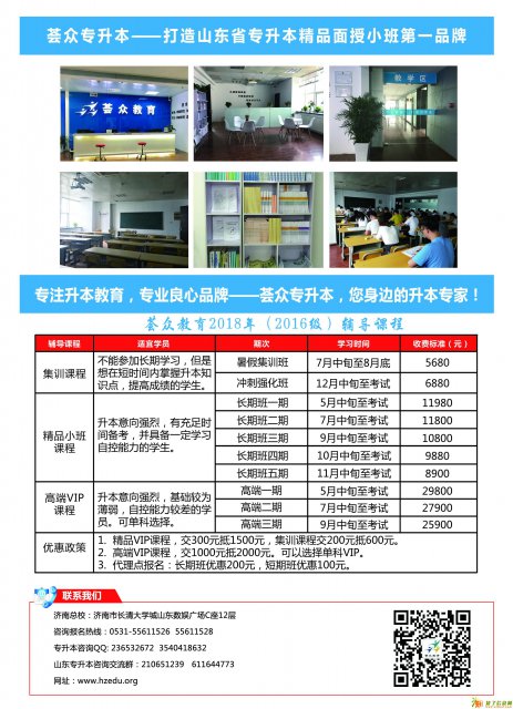 【荟众教育福利重磅来袭】现荟众专升本推出“升本精英“荟”,“众”生同圆梦”活动,凡在班级学习成绩在前十名的同学均可报名,名额有限,先到先得!!最最重要的是学费最低可享1折优惠!!这么残暴的福利要上线,作为学霸的你,还在等什么?升本梦想从此刻开始,荟众教育等你出发!! 地址:济南市长清大学城山东数娱广场C座12层