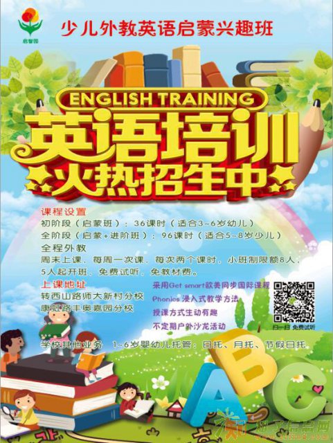 启智园“英语启蒙兴趣采用外教授课,北美,英国或南非专业教师授课,发音纯正,方法独特,生动有趣,在游戏和互动中学习,使孩子能迅速对英语产生浓厚的学习兴趣,课程设计也有别于其它培训机构,我们采用短学期,互动式的教学方法,不完全为了孩子能记住多少英语单词,最重要的是让孩子觉得学习英语原来这么有趣,这么自豪,在纯正英语发音的环境中熏陶孩子的英语听力,阅读能力,也就是大家常说的“磨耳朵”这就是我们开设此次兴趣班的初衷,四个月也能是您的孩子成为英语天才小萌娃!