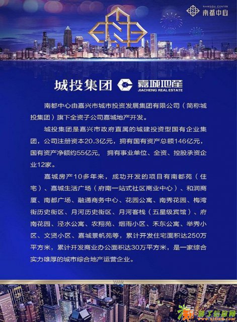 嘉兴南都中心公寓由嘉城集团全资子公司嘉城地产大力开发,占地:9249.8平,建筑面积约21480平方
