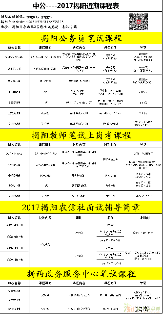 揭阳中公教育公务员课程汇总 :