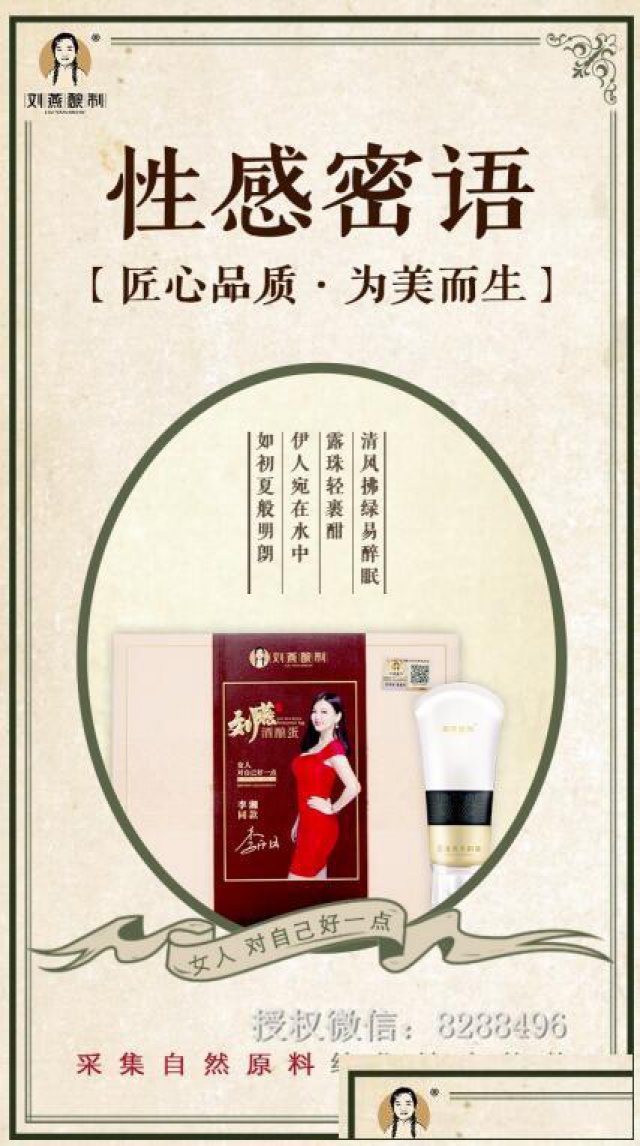 刘燕酿制燕窝酒酿蛋丰胸有效果吗?刘燕酿造旗下的产品有刘燕酿造燕窝酿造鸡蛋、刘燕酿造丰韵霜、粉嫩公主酿造鸡蛋,特别是旗舰产品刘燕酿造燕窝酿造鸡蛋和刘燕酿造丰韵霜自上市以来,受到消费者的赞扬,受到很多女性的信赖,受到各大卫视的邀请。 刘燕酿制燕窝酒酿蛋丰胸有效果吗?