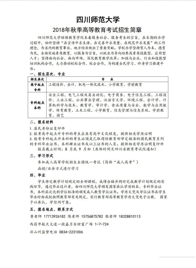 (四川师范大学自学考试)法律、学前教育、小学教育、行政管理、汉语言文学等