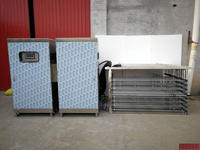 二、 框架式(明渠式)紫外线消毒器是通过布置于开槽沟渠内的紫外消毒模块上的紫外灯发出中心辐射波长为253.7nm的短波紫外线对流经沟渠的水体进行杀菌消毒,从而解决处理后的污水细菌指标的超标问题,使终排放水体的细菌学标达到并超过国家相关排放标准及水质标准要求。二、框架式紫外线消毒器性能特点: 框架式(明渠式)紫外线消毒器采用模块化设计,安装方便、操作简单,可根据不同处理量及用户要求自由组合模块,适用范围广,可靠性高。该系统杀菌速度快、效果好,杀菌效率高,运行费用低。没有因消毒产生的二次污染,所采用的低压高强汞灯由于有效寿命长,大大降低了更换灯管产生的运行和维修费用。三、框架式紫外线消毒器应用行业:1、框架式紫外线消毒器适合于工业废水排放、生活污水排放中末端水的消毒处理。适用对象为污水处理厂、工厂和医院等的污水处理站。2、框架式紫外线消毒器用于渠道式排水的消毒处理。3、框架式紫外线消毒器可用于替代常规的加氯消毒工艺设备。 紫外线消毒模块:放置于水渠内,将灯管全部没于水下作业。4、紫外模块采用双排灯并列排布,防水设计,模块上端镇流器盒防护等级达到1P54;单个模块结构紧凑、安装方便,在水流动过程中可实现单独维护。5、模块所有与污水接触的金属元件均为304/316不锈钢;所有连接线缆均不暴露在污水和紫外光中。6、灯管处密封采用双重保护设计。7、设备采用低压高强度紫外灯,高强度UV-C输出,寿命长,有效工作寿命大于12000小时;灯管为单端出线式,便于安装与维护。8、设备采用的镇流器是专为本产品所使用的紫外灯配套设计,匹配性好,具有多种异常状态的保护功能,可靠性高,寿命长。9、石英套管采用进口原材料石英,紫外光透过率大于93%;与紫外灯相配,结构亦为单端开口式,安装方便,减少漏水点。10、每个模块均配有漏水检测器,一旦漏水能及时断开电源并发出报警信号,保证安全性;漏水检测器与紫外灯同端出线,便于安装与维护。11、高效的全自动机械清洗(气动清洗式、水压清洗式供用户选择)。12、独创的水压为动力的清洗系统。13、大工作水压为0.3MPa。14、50C≤适应水温≤600C。15、模块输入电源220V/50HZ。