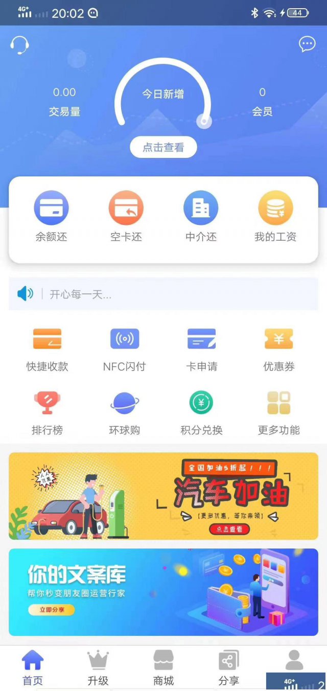 四、超级空卡,无需平台垫资,0风险,1万账单3笔还完 预留代还空卡代还中介代还 智能代还软件的开发流程和时间,关于卡代还软件的开发流程详解 1.智能代还 简单的来说,用少的资金在解决你的账单,有空余的资金来维持你的生活。 2.空卡代还 消费膨胀时代,信卡掏空是普遍现象,当你没有额度的情况下,可以使用这个功能。 3.中介代还 你有还款的需求,我来帮你操作。无线开放后台,招商模式无限化 4.NP消费 通俗的来讲,可将你的账单延迟30-90天,也就是本期账单不出,下个月出。