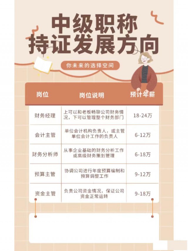 2.升职加薪,有资格面试总账会计,会计主管和财务经理这三个岗位