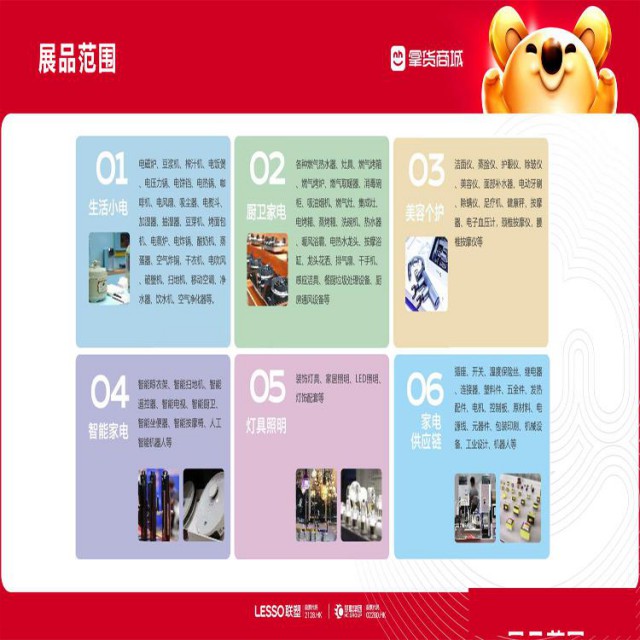 2019年开始,交易会全新升级,除了家电全品类外,还增加了五金、卫浴、橱柜、晾衣架、灯饰等多种品类一起,打造全方位展示的家居用品展,帮助经销商进行高效率地一站式采购,让买家准确掌握家庭用品经销的最新动向,整合资源,探索新机遇。