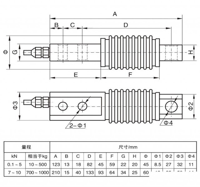 额定载荷: 0.1,0.2,0.3,0.5,1,2,3,5,7,10(kN)