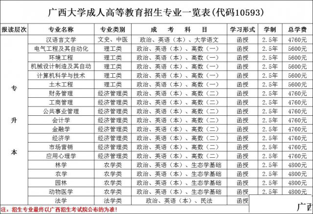 (注:报名截止时间、准考证打印、成人高考考试时间以广西招生考试院官网公布为准。)