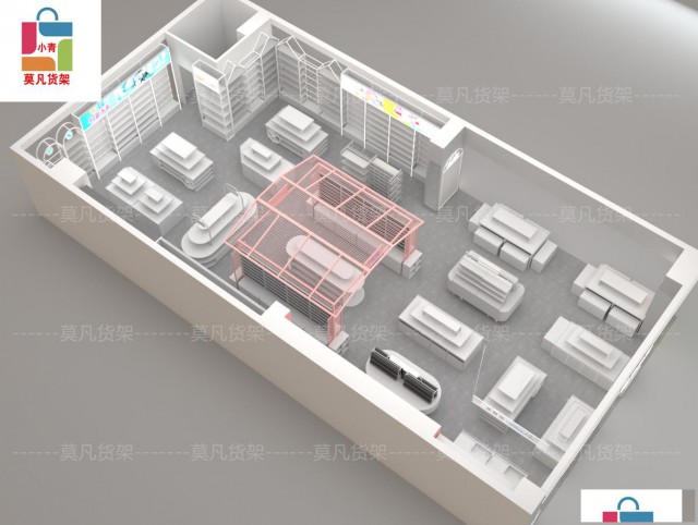 在货架材料的选择上,传统木材、金属和玻璃正与玻璃钢、有机玻璃等新材料结合使用。这些新材料不仅具有优越的机械性能,而且质轻、半透光、可着色、成形自由,为设计师提供了更多创意空间。货架的色彩设计也需遵循“不喧宾夺主”的原则。货架的色彩应作为商品的背景色,起到陪衬作用。对于色彩鲜艳的商品,货架色彩要灰;浅色商品,货架颜色宜深;深色商品,货架色彩宜淡。这种色彩搭配原则能够更好地突出商品本身。