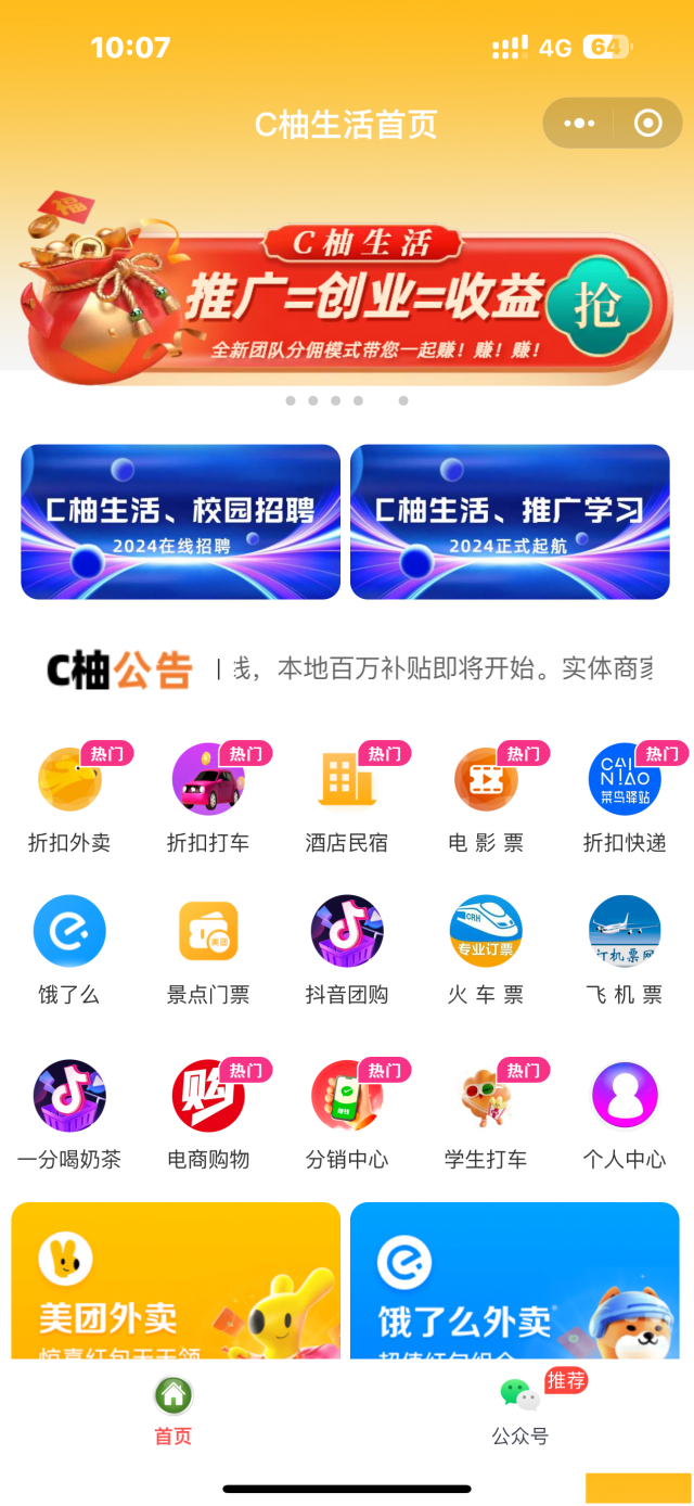 打开自己的手机微信,依次点击“+”-“添加朋友”,在公众号一栏输入“C柚生活”