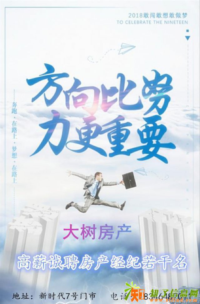 大树房产,房屋买卖租房一站式服务,高薪招聘房产经纪若干名。地址:新时代家园7号门市(公交路线:2线、3线、6线)薪资待遇面谈