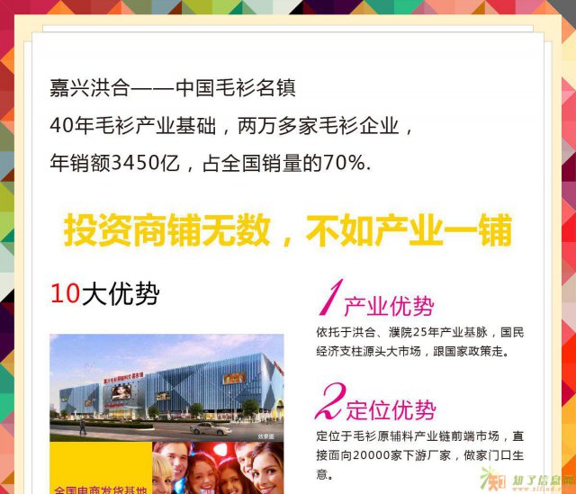 嘉兴毛衫原辅料交易市场.产业铺,源头铺,源头,源头,产业的源头,毛纱,各种服装辅料!每年濮院,毛衫销售350亿,洪合原辅料销售220亿我们的市场就是洪合濮院唯一一个原辅料交易市场!商铺在售主力面积15-40平!