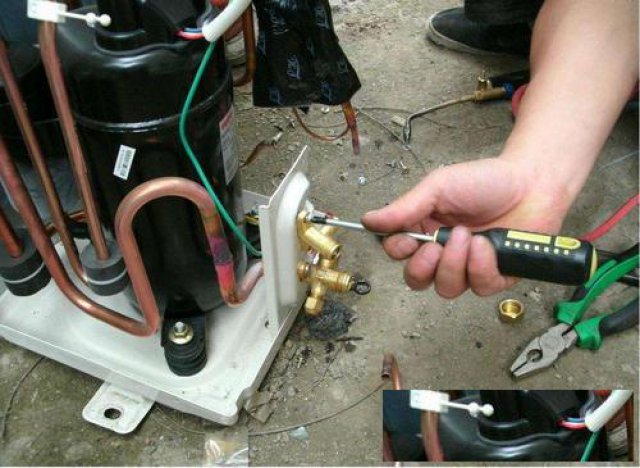 空调加氟:按量添加氟利昂,检查氟系统有无漏点,接口有无松动。