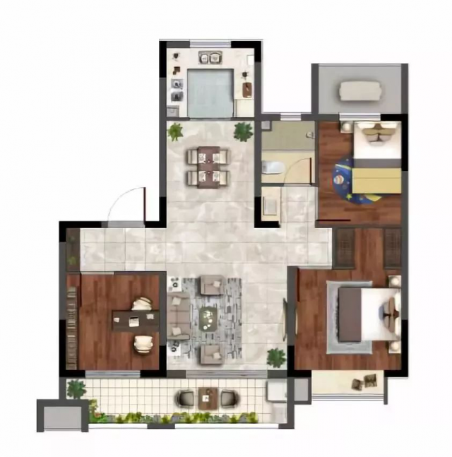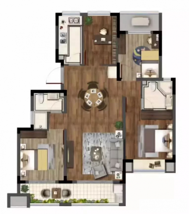 洋房户型:85平、95平(三房两厅一卫)、110平(四室两厅两卫)南北通透
