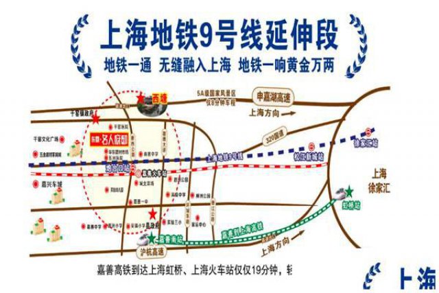 ② 高速:亭枫公路、朱枫公路、高速G60、S36、S32四周覆盖,全高速50分钟即达上海市中心,45分钟即达虹桥机场,70分钟即 达浦东国际机场,轻松接驳上海都市核心繁华。
