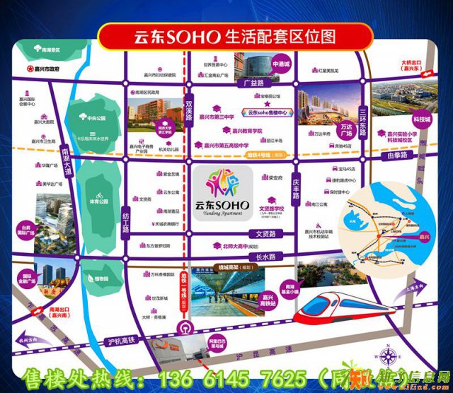 项目周边有多路公交车站点,嘉兴本地规划五条轨道交通,项目西面就设有一号线站点高中园区站,而且有四号线直接对接上海九号线,距离高速路口不过10分钟车程,距离嘉兴南站不到五分钟车站,交通十分发达