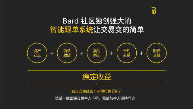 期权跟单模(bard6688)式打破了传统交易的认知,但是可以解决很多痛点问题,相信在之后还会有更多有用的模式玩法出现!让我们敬请期待吧!