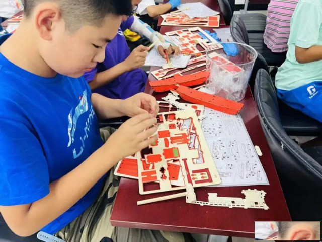 前后舱结构,还原那段在危机中启航的建党岁月。孩子们在老师指导下,一步步拆解模型件、研读说明书、协作拼插,不仅锻炼了动手能力,更在组装过程中深入理解了红船的结构与历史意义。在实践中传承,在探索中成长从“历史的见证者”到“精神的传承者”,再到“实践的探索者”,孩子们通过亲手制作红船模型,让那段峥嵘岁月变得可触可感。红船精神不再是抽象的概念,而是化作了他们手中鲜活的船模、眼中闪烁的光芒。“红船精神”不仅属于历史,更属于新时代的每一个少年。三六六社会实践通过这样一场具象化、生活化的手工活动,让红色基因在潜移默化中深植童心,引导孩子们从小立大志、有担当,争做新时代的“船”承人!每一艘红船,都是一颗初心的启航愿这次手工实践,成为孩子们心中一抹亮眼的红色记忆,伴随他们在未来的道路上敢闯敢试、坚定向前!