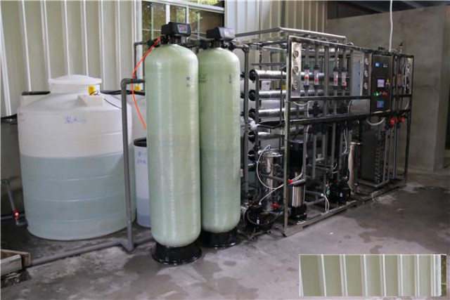 2、预处理→反渗透→中间水箱→水泵→EDI装置→纯水箱→纯水泵→紫外线杀菌器→抛光混床→0.2或0.5μm精密过滤器→用水对象(≥16MΩ.CM)(最新工艺)