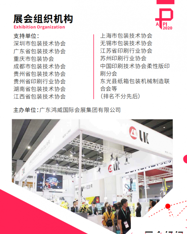 为此,鸿威国际会展集团与众包装行业组织机构联合,倾力打造“2020年亚洲包装印刷产业博览会”。首届博览会以“包装之机品牌之道”为主题,拟打造一个以包装制品、包装机械、印刷为主的高端行业盛会。