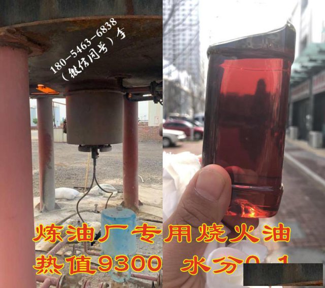 现在厂里新推出的9100热值黑红色烧火油迎着光透亮,闪点45打火机一下子点不着,非常安全的一款锅炉烧火油,纯属石油基产品,没有任何化工废料,同时也可以出具检测报告,保着大小锅炉随便燃烧,燃烧后没有积碳,本身油也不会有沉淀,过着150目滤网装车。