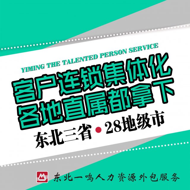 一鸣人才成立于2008年,目前已在沈阳、大连、鞍山、抚顺、铁岭、丹东、本溪、盘锦、营口、锦州、阜新、葫芦岛、朝阳、辽阳、吉林、长春、白城、松原、四平、辽源、梅河口、延吉、珲春、哈尔滨、绥化、牡丹江、齐齐哈尔、大庆等地区设立直属分公司。作为全国百家优秀同行、千家知名企业的人事外包供应商,东北一鸣依仗高效的服务团队,过硬的专业技能,为客户提供劳务派遣、人事外包、人才招聘等全方位、多层次、高标准的人力资源服务。助力企业健康的发展,带给员工超越期待的客户体验。