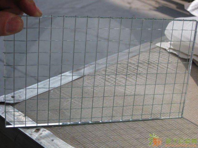 夹丝玻璃别称防碎玻璃.它是将普通平板玻璃加热到红热软化状态时,再将预热处理过的铁丝或铁丝网压入玻璃中间而制成.