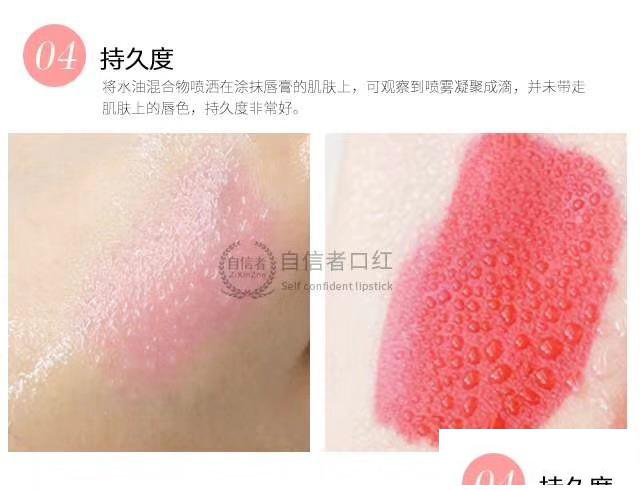 持久度相信小仙女们都有过这样的经历,美美地化好妆出门见朋友或是见客户,坐下来刚喝了口水,唇印就留在了杯子上,嘴上的唇膏所剩无几,既尴尬又得不停补涂。所以,唇膏的持久度测试也是必不可少。楼主将自信者淡彩晶钻唇膏涂抹在嘴上10分钟后去喝咖啡,白色的杯盖上,几乎没有留下唇印,说明它持久度很赞完全不沾杯脱色。