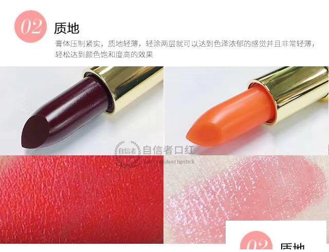 唇膏作为涂在嘴上的用品,成分的安全性很重要,毕竟一不小心就会被吃到嘴里。自信者品牌在产品品质的打造上力求天然,唇膏采用天然VE+蜂蜡凝制,并通过了权威检测认证机构SGS Group的毒理性检测和重金属检测,所以它的质量还是信得过的。