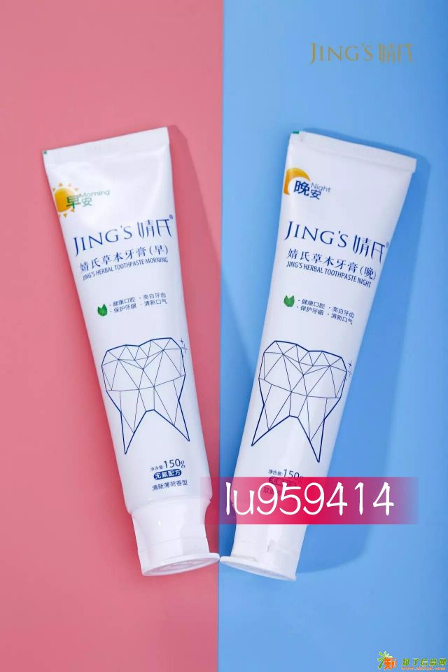 婧氏草本牙膏,早膏所含芦荟,富含维生素、矿物质、蒽醌类物质达百种复合营养素;金银花清解血毒,宣散风热-此两者,皆有抗菌消炎之作用。银杏、红花活血而养血;人参养肾固齿;氨基酸、生物酶为口腔分泌的消化液助力。<div>藿香专消胸脘痞闷;茉莉花理气和中-此二者,皆馥郁清芬,令您齿颊留香而笑面迎人。婧氏天然草本牙膏全中草药成分,汲取民间秘方精华,根据白天黑夜口腔环境的差异,以五行理念配方,实现了天然本草药物成分对牙齿的最低限度干预与最高效干预的完美结合。婧氏草本牙膏是纯天然的草本牙膏,不含任何化学添加剂,并且无氟,可溶解,可吸收。婧氏草本牙膏采用古典医学巨著配方,独特秘制配方,经现代科技萃取完全草本精华,富含多种天然中草药成份,能坚固亮白牙齿。氟被人体过量摄入后无法被身体代谢,久而久之危害人体健康。联系方式:lu959414</div>