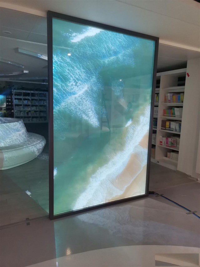 是新代的显示设备,具有高清晰耐强光、超轻薄、抗老化等。主要用于橱窗展示和投影。