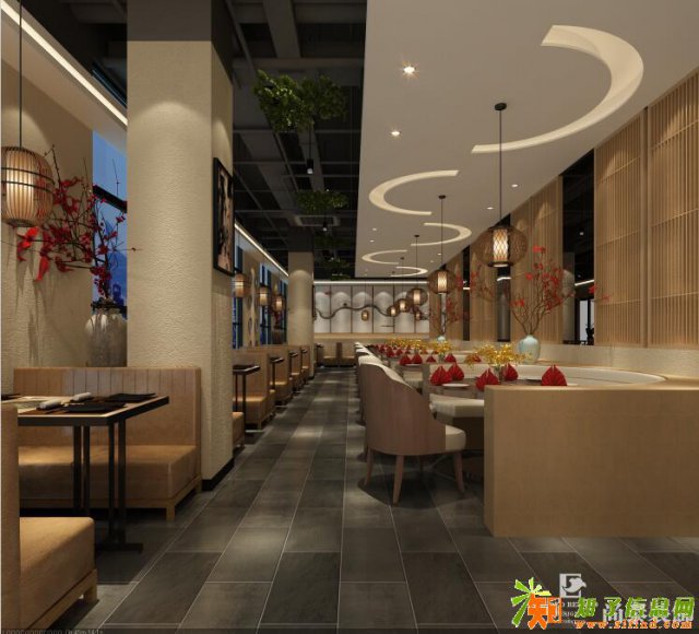 本案是一个主营江西菜(赣菜)的餐厅,说到江西人们可能首先想到是井冈山、庐山等,去过井冈山的人们一定不会错过咱毛主席的故居。具有民族特色“青瓦黄墙”是本案采用的主题。 用“青瓦”来装饰门头结合具有现代特色的黑色不锈钢边框玻璃隔断,进入餐厅后的“黄墙”与水墨丹青、园林艺术等特色,自然、完美的融汇于一,中式屏风等中式装饰元素,结合极具现代感的皮革,顺理成章地营造出一种既时尚又简洁、雅致、宁静以致远的用餐氛围。在空间运用上,设计师巧妙的将餐厅分割成不同的用餐区域,各具意境。过道布局彰显经验,可谓阡陌交通,通道通达。