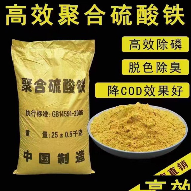 聚合硫酸铁是一种性能优越的无机高分子混凝剂,液体呈棕褐色,固体为淡黄色无定型粉状固体,极易溶于水,10%(质量)的水溶液为红棕色透明溶液,固体产品有较强的吸湿性。聚合硫酸铁广泛应用于生活饮用水、工业用水、各种工业废水、城市污水、污泥脱水等的净化处理。